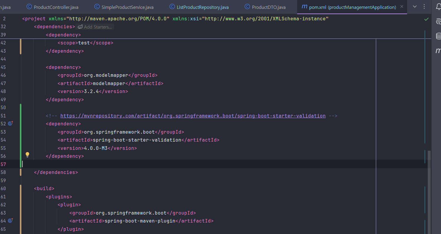 메이븐에서 Bean validation을 위한 의존성 추가를 하기 위해서, spring-boot-starter-validation 이라는 의존성을 추가하기 위해서, 메이븐 저장소에서 최신 버전을 선택에서 dependency 태그에 넣었다.