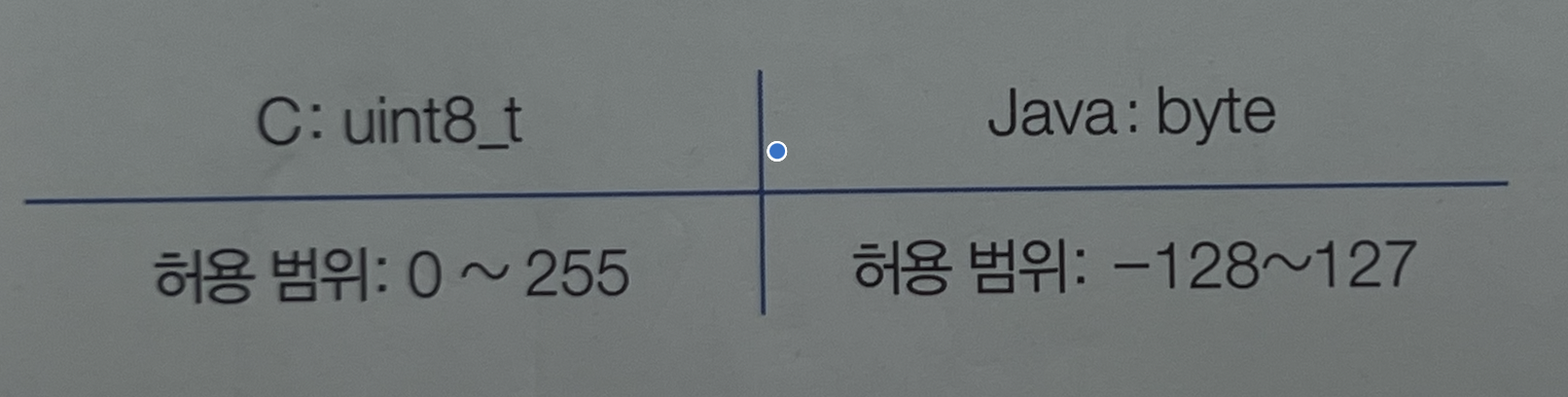 C has uint8_t type, this type is 1byte and has value of 0~255 range.