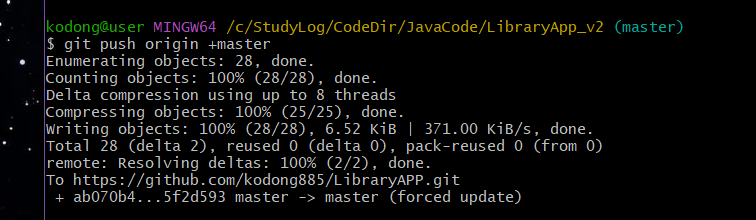 ▶ $ git push origin +master