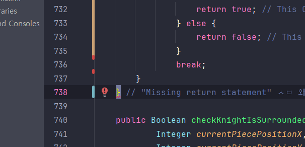 완성했지만... Missing return statement가 떳다....